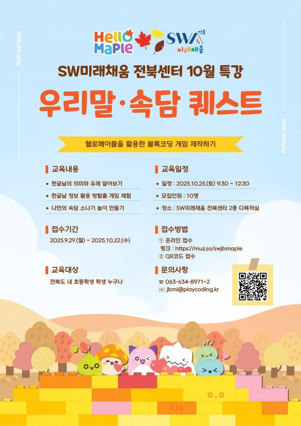 교육 SW미래채움 전북센터 찾아오는 SW교육 10월 특강(헬로메이플과 함께하는 우리말/속담 퀘스트)